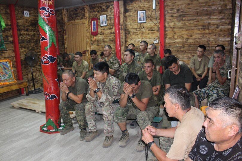 В присутствии военнослужащих из 5-й танковой бригады 4-го батальона состоялся торжественный молебен освящения статуи. Молебен провели Бадма-лама, который служит в 36-й армии на полигоне «Восточный», и Батор-лама из полигона «Куликовский» 5-й армии.