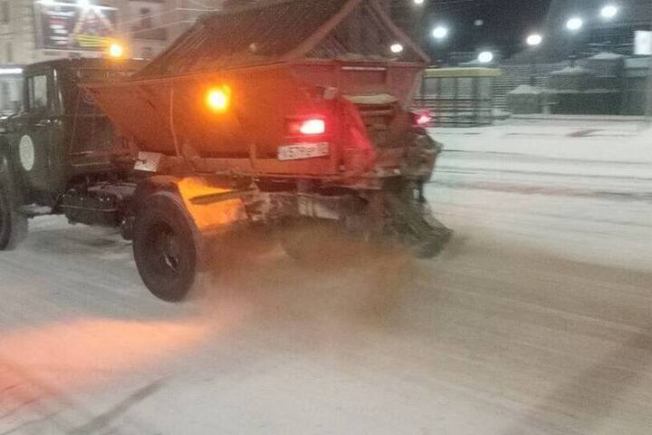 За ночь в Улан-Удэ выпало 6 мм снега и сотрудники Комбината по благоустройству с 12 часов ночи убирали снег и работали над посыпкой городских дорог.